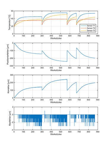Es lassen sich nicht nur Temperaturdaten als Prädiktoren verwenden. Auch Zusatzinformationen bzgl. vorhergehender Wartezeiten wie die vergangene Zeit seit dem letzten Werkstück, Warten auf Werkstück (mit drehenden Spindeln), oder vorhergehender Werkzeugwechsel (offene Türen) können eingelernt werden.